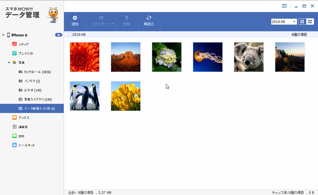 こちらはiPhone6を例でiTunesなしで、スマホWOW!!! データ管理 for iPhoneを使って、パソコンから写真をiPhoneに取り込む方法を紹介します。