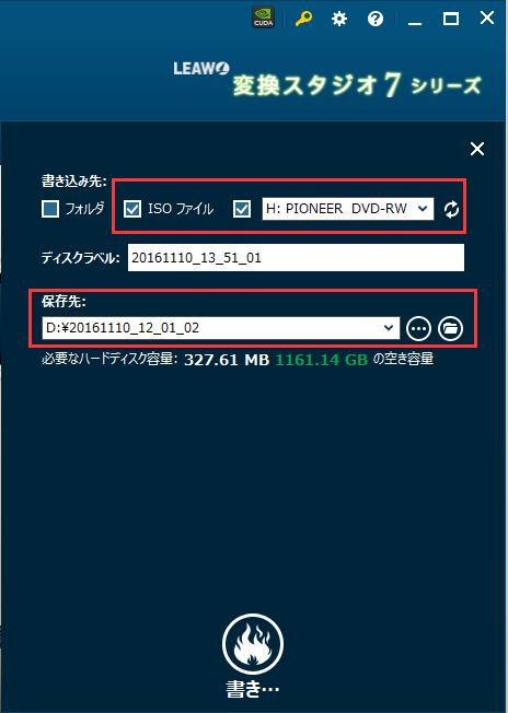書き込み先をISOもディスクドライブも選択してください。
