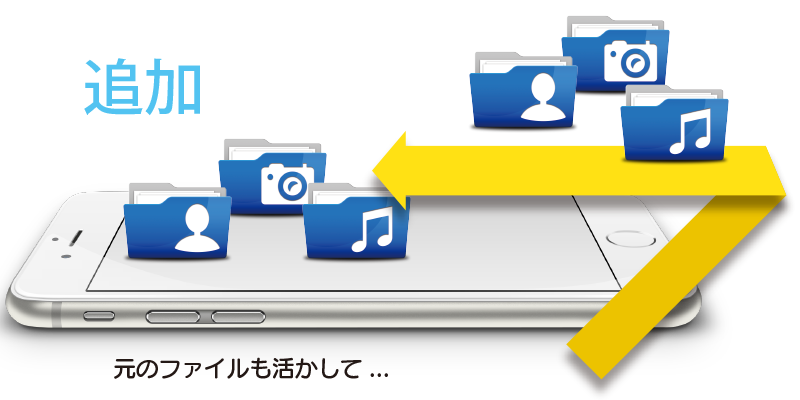 引越し先のデータを残したい場合もOK- 引越し先のスマホにもともと入っている、写真や音楽、連絡先を残したままで、データを追加する引越も、もちろんできます。